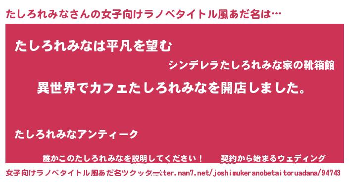 | 胡散臭い通販商品みたいなあだ名 | 『前代未聞の健康食品…その名も「たしろれみな」』 |