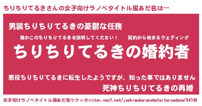 | 胡散臭い通販商品みたいなあだ名 | 『運命の人と巡り会える高級そうな絵画…その名も「ちりちりてるき」』 |