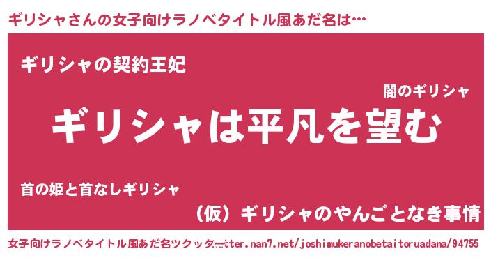 | 男性向けラノベタイトル風あだ名 | 『ダンジョンにギリシャを求めるのは間違っているだろうか』 |