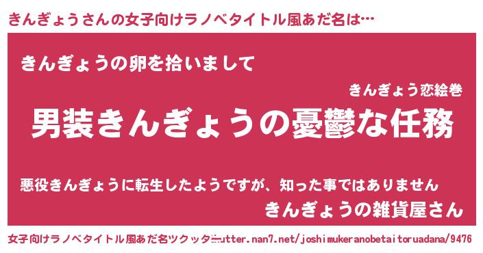 | 男性向けラノベタイトル風あだ名 | 『うちのきんぎょうが世界を掌握している!』 |