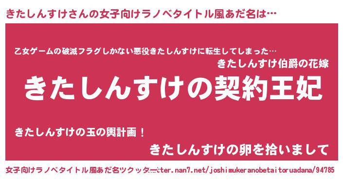 | 男性向けラノベタイトル風あだ名 | 『誰もが恐れるあのきたしんすけが、ぼくの専属メイドになるようです。』 |