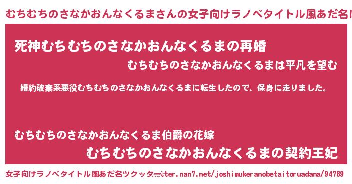 | ヘコむあだ名 | 『むちむちのさなかおんなくるま(小並感)』 |