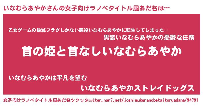 | 男性向けラノベタイトル風あだ名 | 『はたらくいなむらあやかさま!』 |