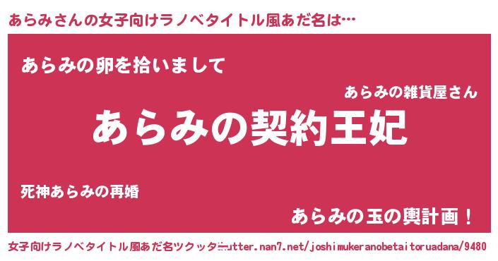 | 男性向けラノベタイトル風あだ名 | 『あらみという概念が存在しない退屈な世界 』 |