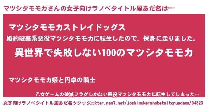 | ヘコむあだ名 | 『マツシタモモカ(小並感)』『マツもー』 |