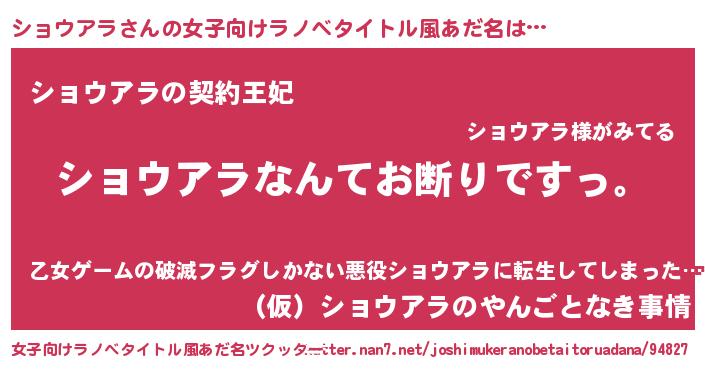 | 意味不明あだ名 | 『自称ショウアラ』『永久保存ショウアラ』 |