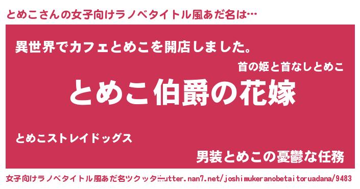 | 男性向けラノベタイトル風あだ名 | 『やはりとめこの青春ラブコメはまちがっている 』 |