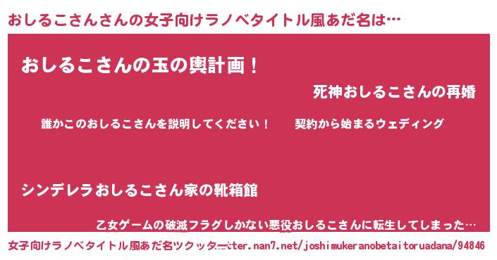 | 男性向けラノベタイトル風あだ名 | 『オシルコサンアートオンライン』 |