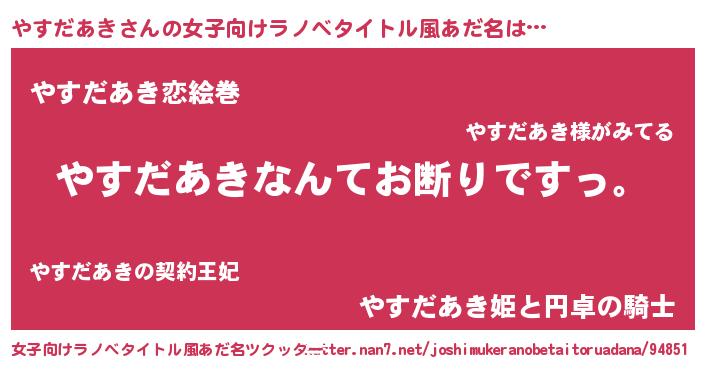 肩書あだ名 | 『やすだあき閣下』『やすだあき助手』 |