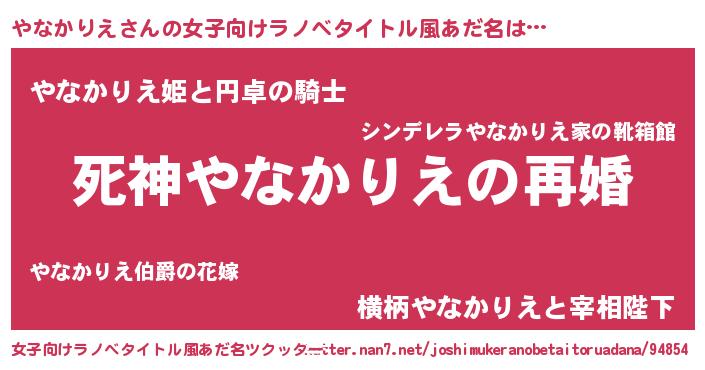 | 男性向けラノベタイトル風あだ名 | 『ノーゲーム・ノーヤナカリエ』 |