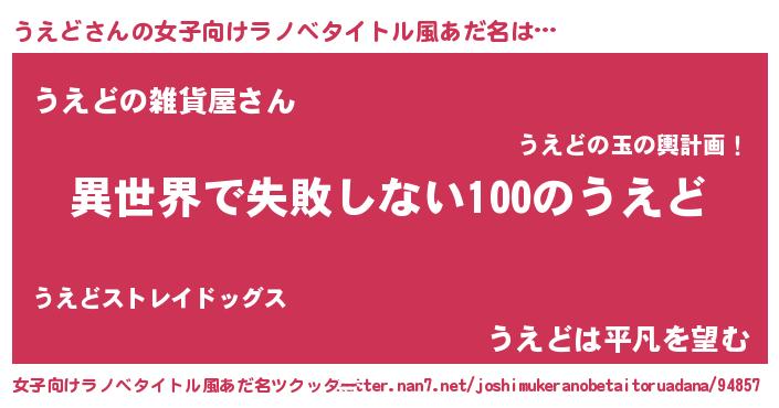 | 男性向けラノベタイトル風あだ名 | 『うえどという概念が存在しない退屈な世界 』 |