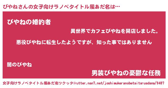 | 男性向けラノベタイトル風あだ名 | 『この素晴らしい世界にびやねを!』 |