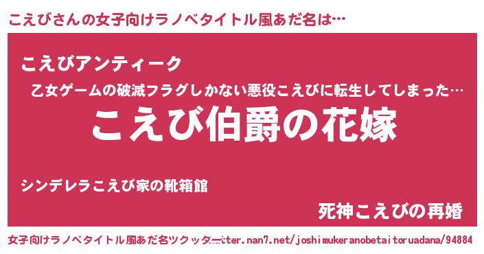 | ファンタジー風あだ名 | 『エターナルコエビー』『ゼコエトゥ』 |