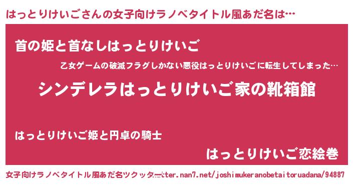 | 胡散臭い通販商品みたいなあだ名 | 『100人中100人が認めた隕石のかけら…その名も「はっとりけいご」』 |