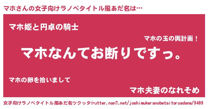 | 男性向けラノベタイトル風あだ名 | 『魔法科高校のマホ』『マホの憂鬱』 |