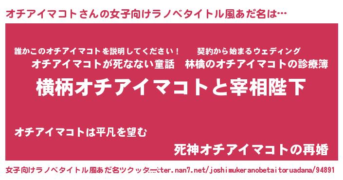 | 胡散臭い通販商品みたいなあだ名 | 『億万長者になれるブレスレット…その名も「オチアイマコト」』 |