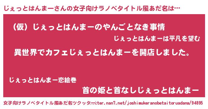 | ヘコむあだ名 | 『じぇっとはんまー(笑)』『じぇにゅー』 |