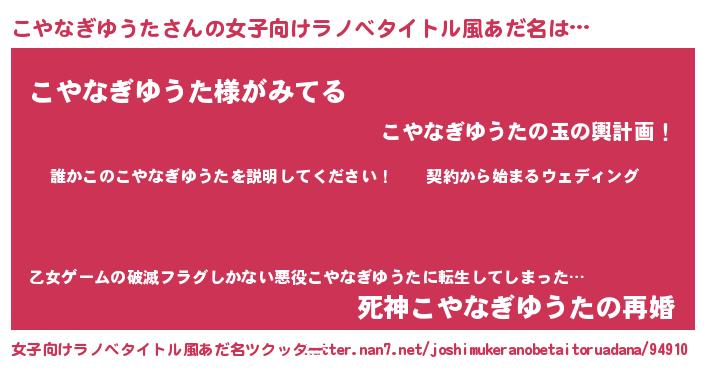 | 男性向けラノベタイトル風あだ名 | 『コヤナギユウタアートオンライン』 |