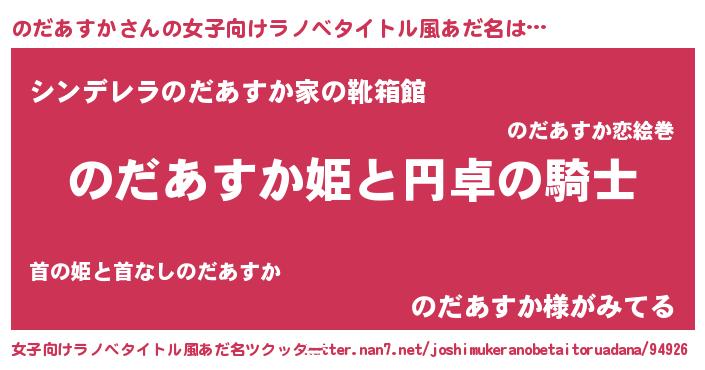 | 男性向けラノベタイトル風あだ名 | 『ノダアスカアートオンライン』 |