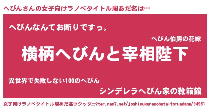 | ヘコむあだ名 | 『なまこ酢』『へびん(笑)』 |