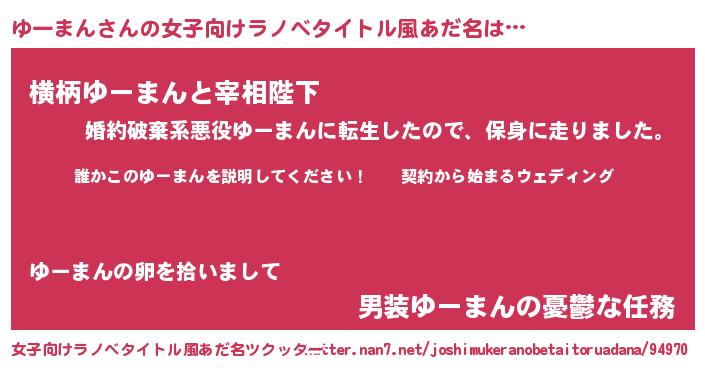 | 胡散臭い通販商品みたいなあだ名 | 『億万長者になれる霊験あらたかなお札…その名も「ゆーまん」』 |