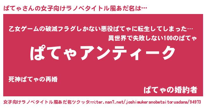 | 男性向けラノベタイトル風あだ名 | 『魔法科高校のぱてゃ』 |
