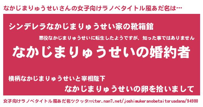 | 胡散臭い通販商品みたいなあだ名 | 『運命の人と巡り会える高級そうな壺…その名も「なかじまりゅうせい」』 |