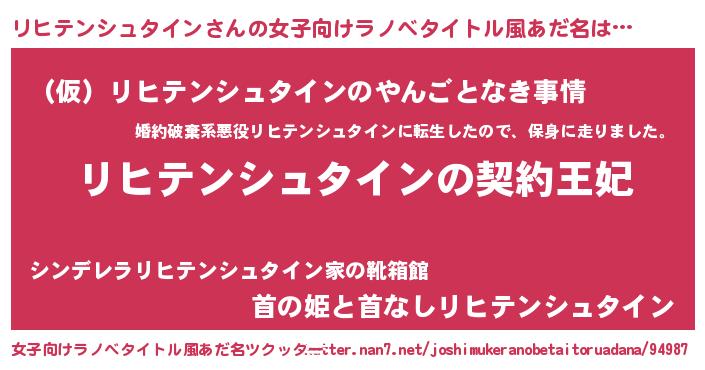 | 男性向けラノベタイトル風あだ名 | 『リヒテンシュタインという概念が存在しない退屈な世界 』 |