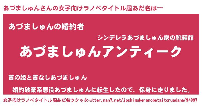 | 胡散臭い通販商品みたいなあだ名 | 『テレビで話題のアガリクス…その名も「あづましゅん」』 |