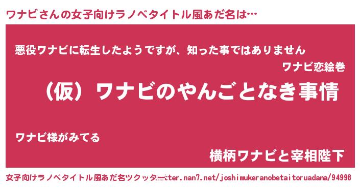| ヘコむあだ名 | 『ワナふぇ~』『ワナ太郎』 |