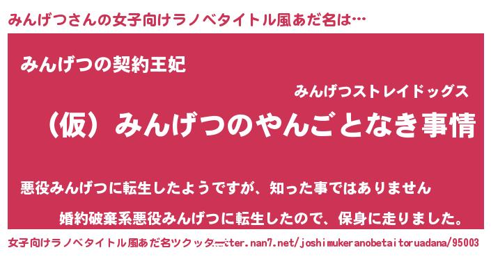 | 男性向けラノベタイトル風あだ名 | 『みんげつの憂鬱』『ミンゲツスレイヤー』 |
