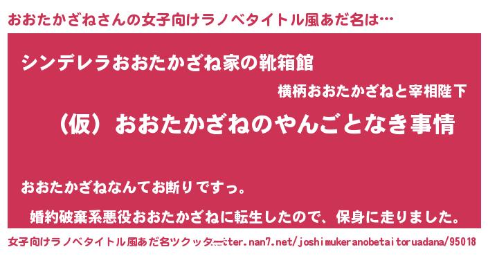 | 胡散臭い通販商品みたいなあだ名 | 『必ず成功するブレスレット…その名も「おおたかざね」』 |