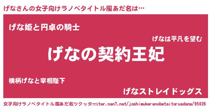 | 男性向けラノベタイトル風あだ名 | 『げなという概念が存在しない退屈な世界 』 |