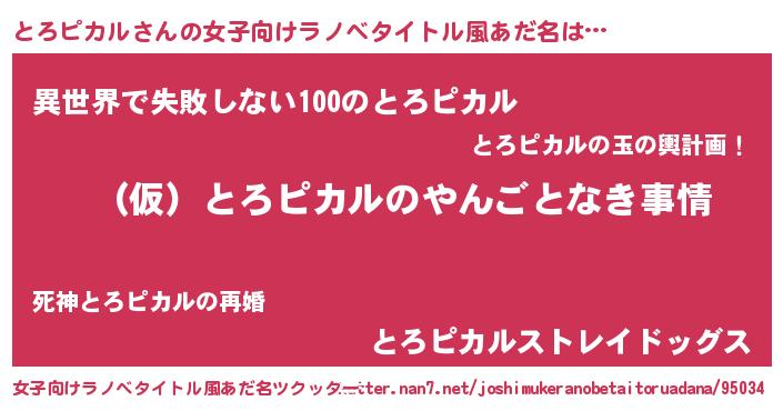 | 男性向けラノベタイトル風あだ名 | 『とろピカルの憂鬱』 |