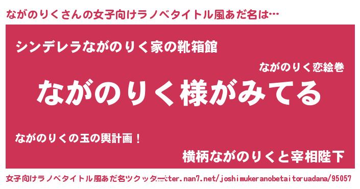 | ヒーロー風カッコイイあだ名 | 『天弓騎士ナガ』『正義の使者ながのりく』 |