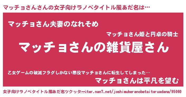 | ファンタジー風あだ名 | 『エターナルマッチョサンー』 |