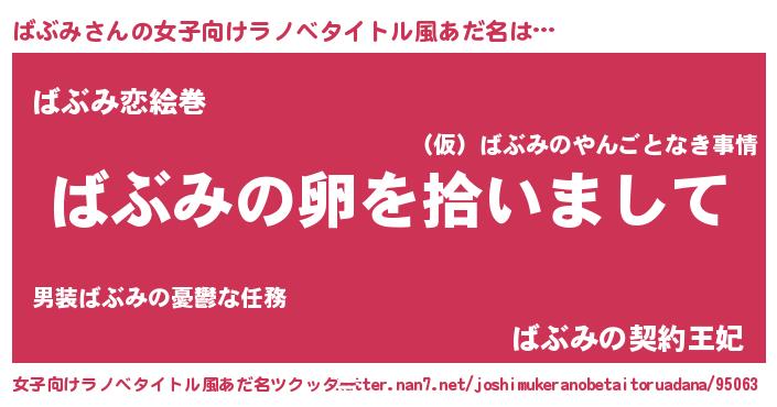 | 男性向けラノベタイトル風あだ名 | 『ばぶみの嫁は女の子じゃないと思った?』 |