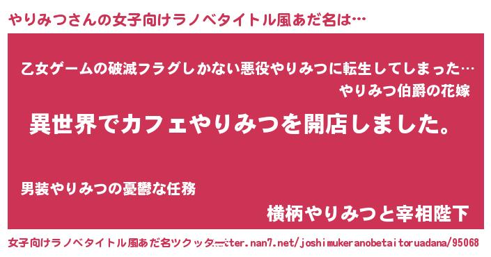 | ヘコむあだ名 | 『やりみつ(震え声)』『なまこ酢』 |