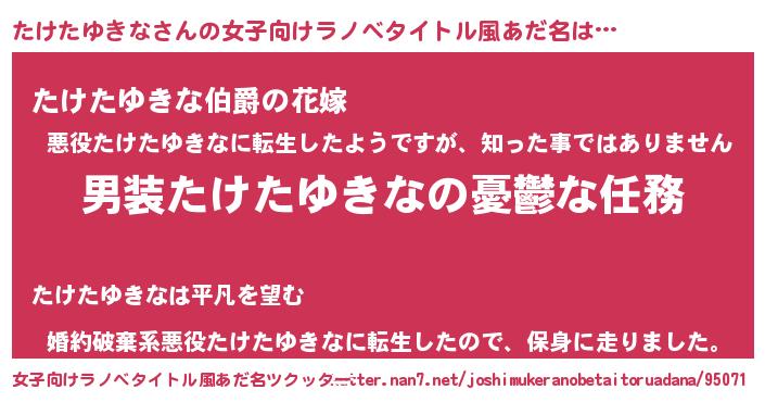 | 肩書あだ名 | 『たけたゆきな機長』『たけたゆきな大将』 |