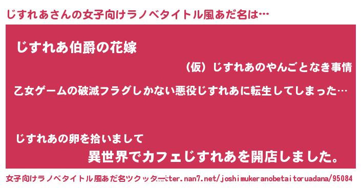 | ヒーロー風カッコイイあだ名 | 『仮面ジスダー』『ウルトラじすれあマン』 |