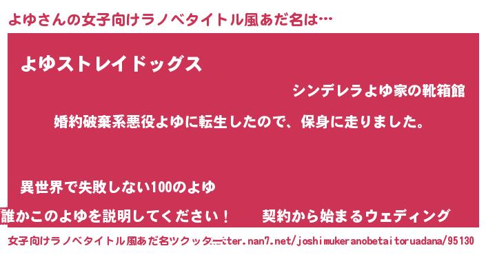 | 男性向けラノベタイトル風あだ名 | 『ヨユスレイヤー』 |