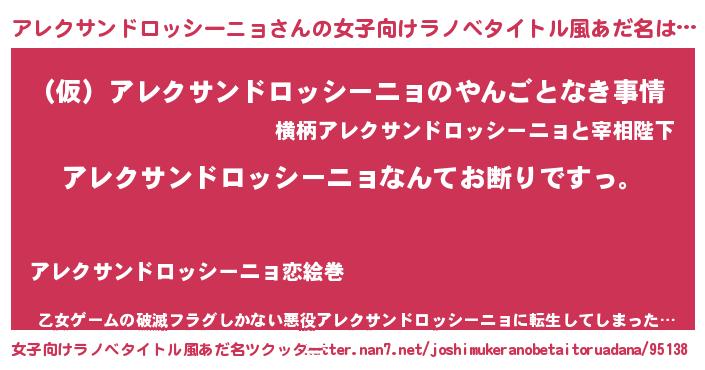 | 男性向けラノベタイトル風あだ名 | 『魔法科高校のアレクサンドロッシーニョ』 |