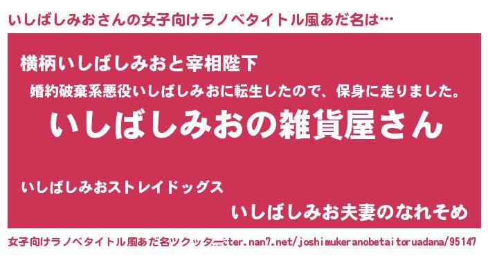 | 男性向けラノベタイトル風あだ名 | 『やはりいしばしみおの青春ラブコメはまちがっている 』 |