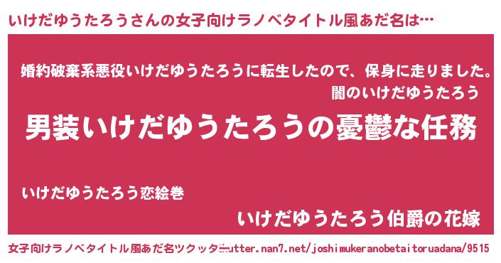 | 胡散臭い通販商品みたいなあだ名 | 『運命の人と巡り会える高級そうな皿…その名も「いけだゆうたろう」』 |
