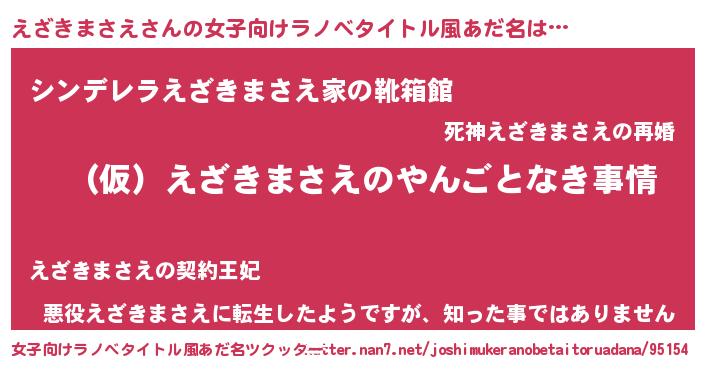 | 男性向けラノベタイトル風あだ名 | 『えざきまさえの憂鬱』 |