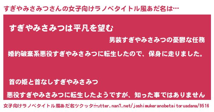すぎやみさみつさんの女子向けラノベタイトル風あだ名