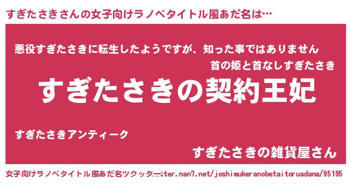 | 男性向けラノベタイトル風あだ名 | 『すぎたさきという概念が存在しない退屈な世界 』 |