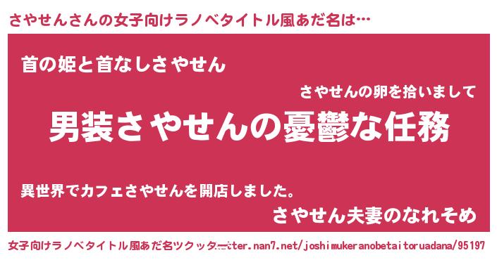 | ヒーロー風カッコイイあだ名 | 『慈愛の使者さやせん』『暗黒騎士サヤ』 |