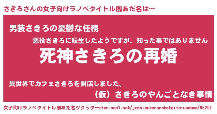 | 男性向けラノベタイトル風あだ名 | 『ノーゲーム・ノーサキロ』 |