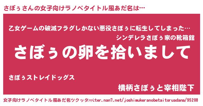 | 意味不明あだ名 | 『とにかく怪しいさぼぅ』『自称さぼぅ』 |
